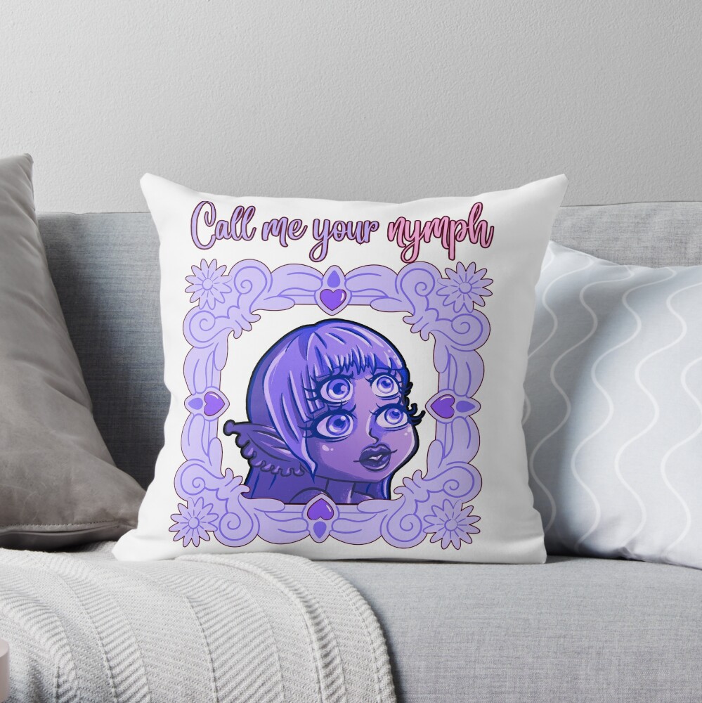 Call Me Your Nymph Kawaii Purple Alien Egil Tee Throw Pillow